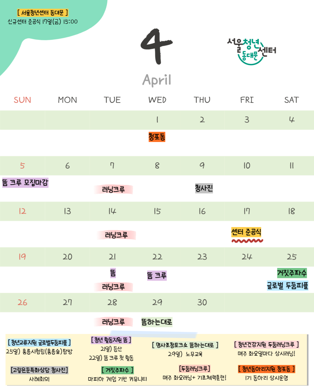 [서울청년센터 동대문] 서울청년센터 동대문 3월 소식지 및 4월 캘린더