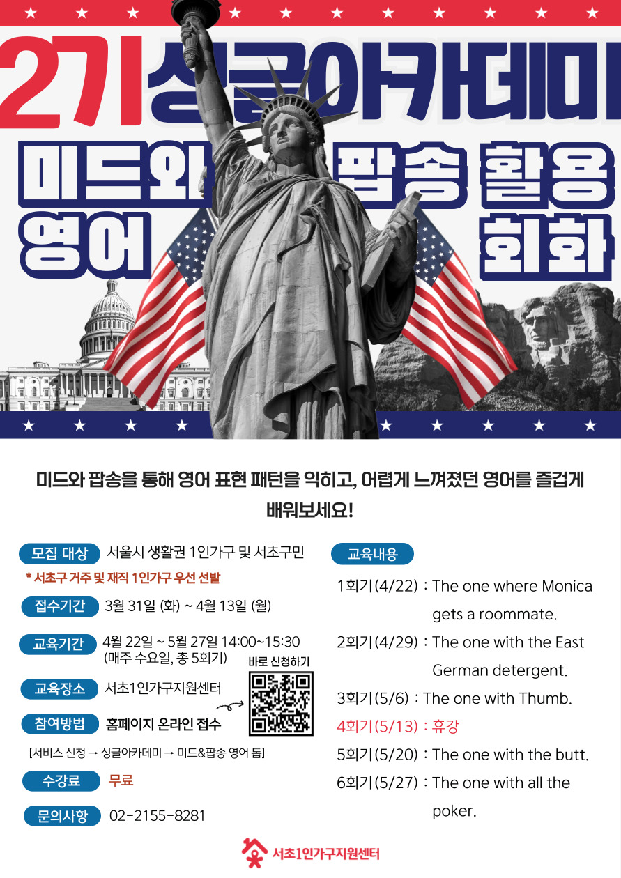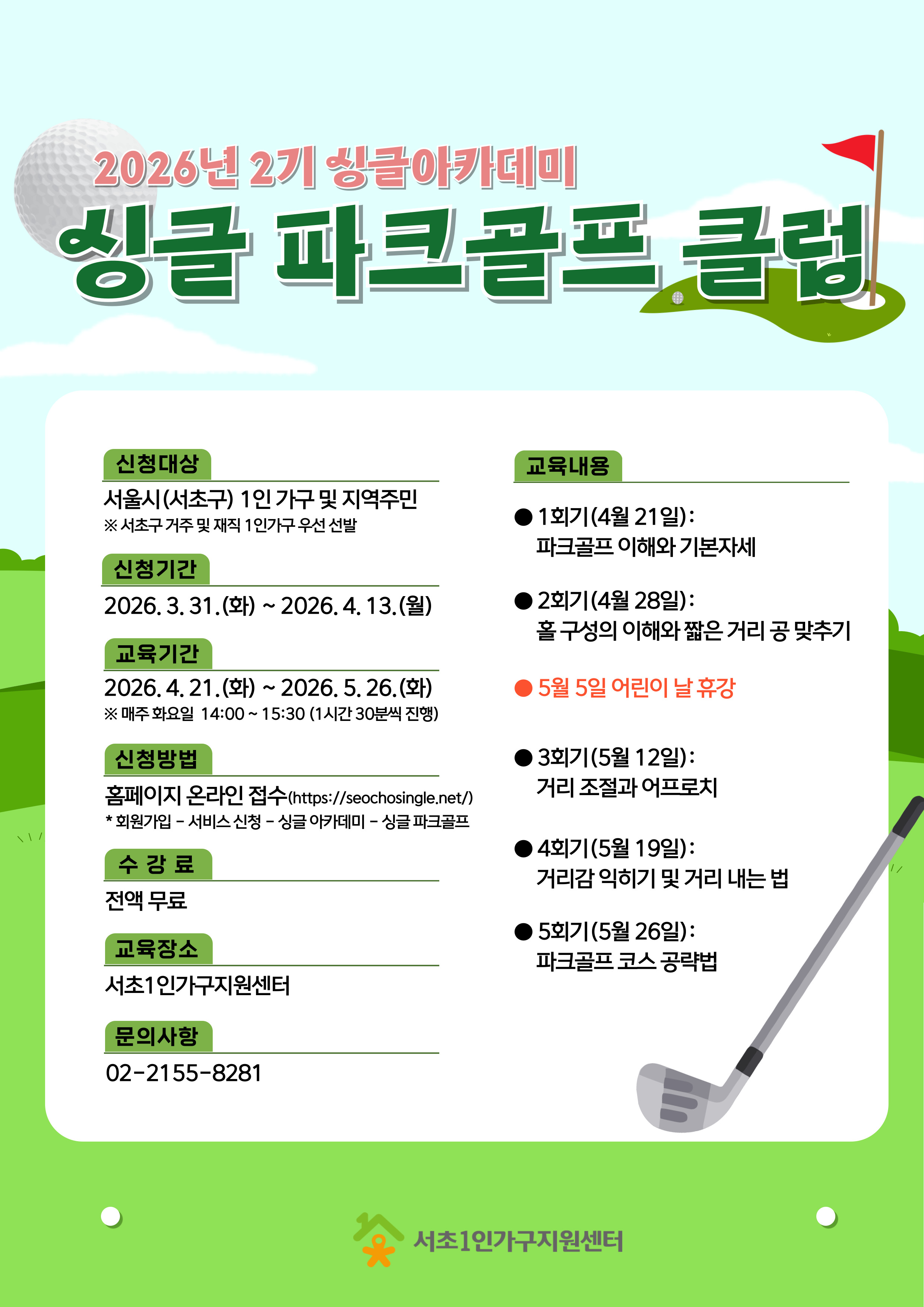 ★ 파크골프 : 화요일 14:00~15:30 ★ 미드, 팝송 영어회화 : 수요일 14:00~15:30 ★ 저속노화 양식 : 수요일 16:30~18:30