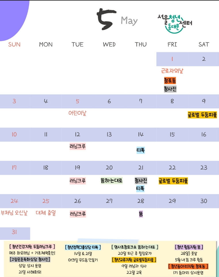 [서울청년센터 동대문] 서울청년센터 동대문 5월 캘린더