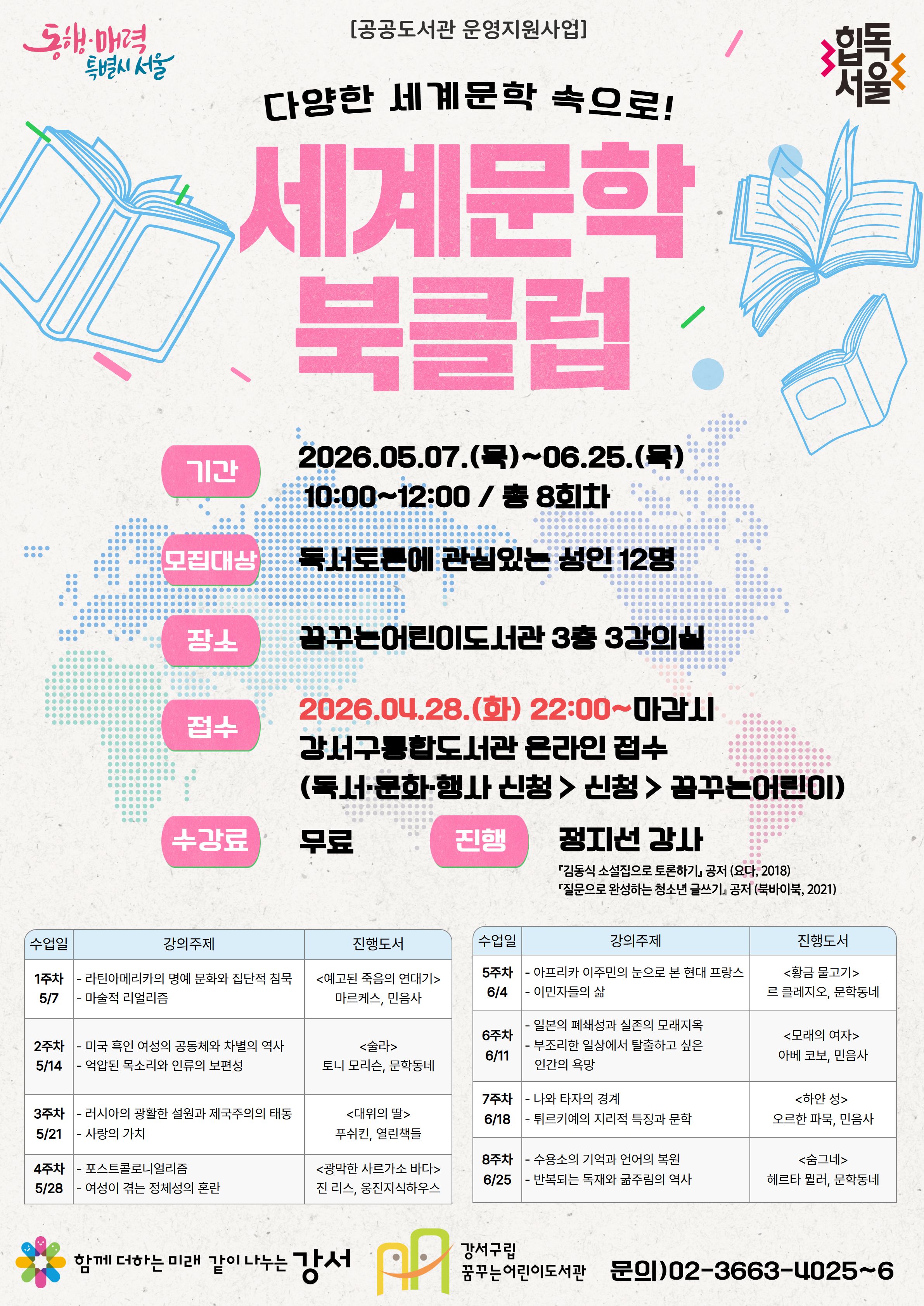 강서구 도서관에서 세계문학 읽고 함께 나누는 북클럽 시작해, 혼자 책 읽기 지루했다면 이번 기회 어때?