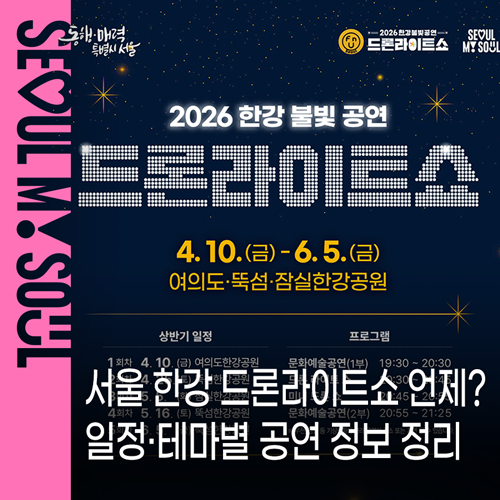 🔎 즐겨봐요 문화 관광 2026 한강 드론라이트쇼는 4월 10일부터 6월 5일까지 여의도·뚝섬·잠실 한강공원에서 진행되며, 드론 공연과 문화예술 프로그램이 함께 운영됩니다. 여의도·뚝섬·잠실 한강 드론라이트쇼 시간은 오후 8시 30분 부터이며, 누구나 무료로 관람 가능합니다. 여의도·뚝섬·잠실 한강 드론라이트쇼 시간 언제인지 궁금했다면 🔎 이번 봄 한강 밤 나들이 계획 여기서 바로...
