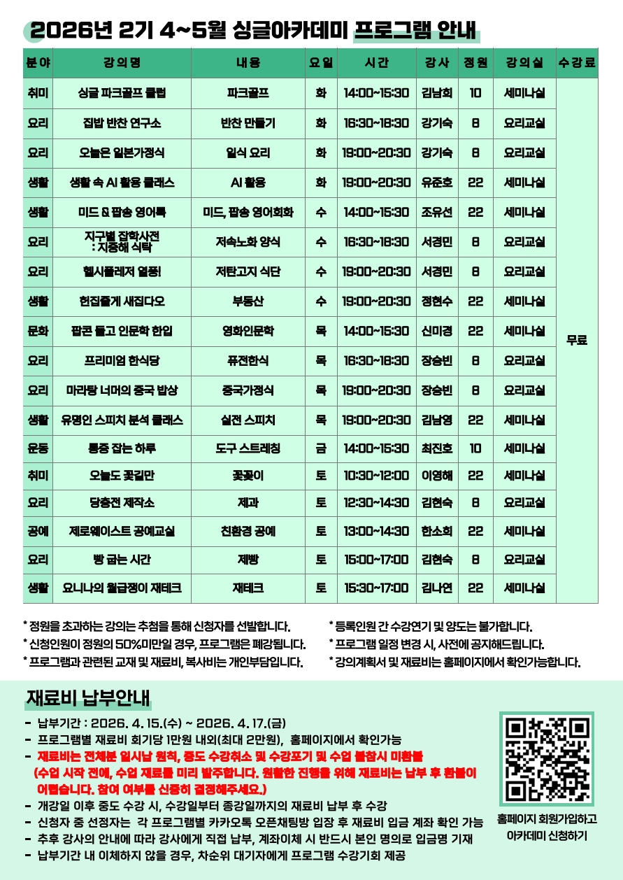 혼자여도 괜찮아, 싱글아카데미 2기 모집 중! 내년 봄 함께 성장할 1인가구들을 기다려.