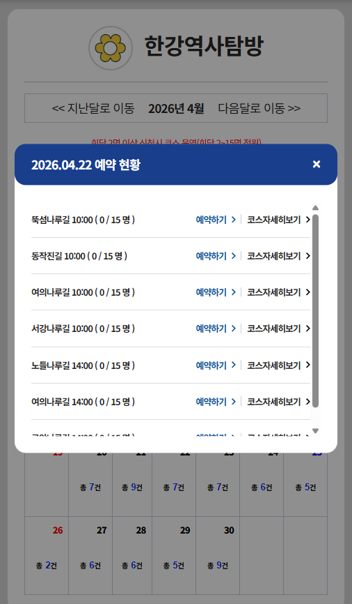 🔎즐겨봐요 문화 관광 서울 한강에서 진행되는‘한강역사탐방’은 해설사와 함께 16개 코스를 걷는 역사 체험 프로그램입니다. 2026년 4월 20일부터 운영되며, 4월 10일 오전 9시부터 한강역사탐방 예약이 선착순으로 진행되고 있습니다! 🚨선착순 마감임박! 한강역사탐방🚨 한강은 '그냥 걷는 곳'이 아니라 이야기를 듣는 산책 공간 입니다. 📢한강역사탐방, 어떤 프로그램일까요? ...