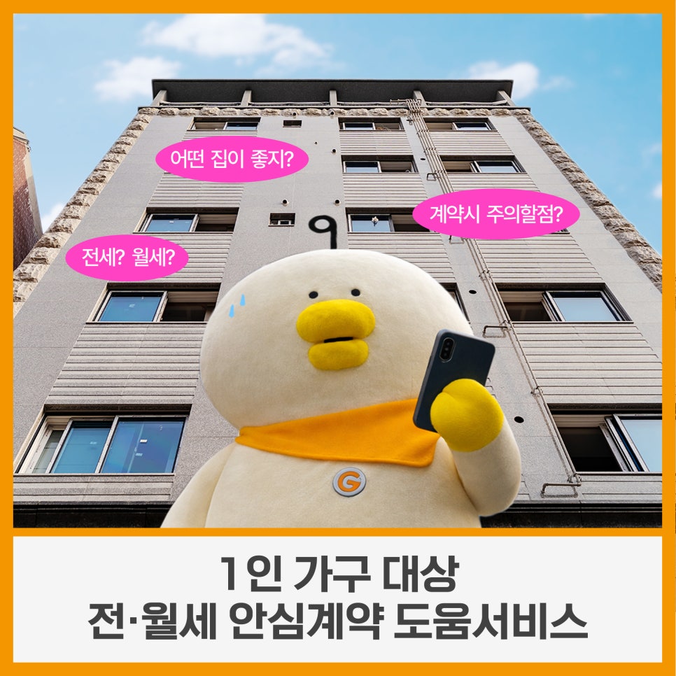 1인가구 대상 전월세 안심계약 도움서비스 처음 집 구하는 날,😓 혼자 고민하지 마세요! 구로구가 1인 가구를 위한 전·월세 안심계약 도움서비스를 운영합니다! 어떤 집이 좋은지 모르겠다면, 전세, 월세 계약이 막막하다면 현직 공인중개사인 주거안심매니저와 함께 안전하게, 든든하게 보금자리를 구해보세요! 👍 ✅ 지원대상 구로구 거주 또는 거주예정 1인가구(독립가구 예정자 포함) ✅ 지...