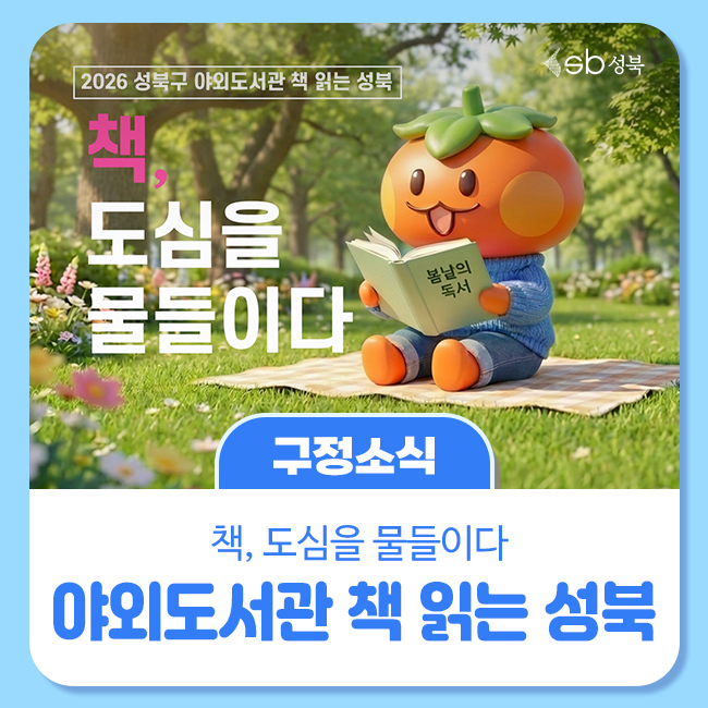 안녕하세요 성북누리입니다. 조금씩 옷차림이 가벼워지고 따스한 봄바람이 불어오는 2026년의 상반기입니다. 도심 속 문화 휴식처, 성북구 야외도서관 올해도 기다리셨나요? 📚 성북구 야외도서관은 도서관 밖, 자연 속으로 책을 가져온 이색 도서관입니다. 큐레이션 도서는 물론, 편안하게 누워 쉴 수 있는 푹신한 빈백, 캠핑 의자 등이 준비되어 누구나 가볍게 방문해도 즐길 수 있...