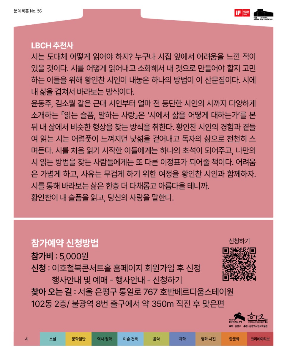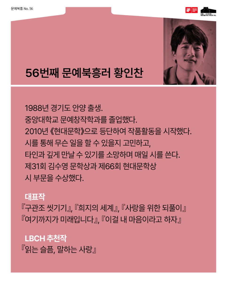 황인찬의 첫 산문집 <읽는 슬픔, 말하는 사랑>으로 삶을 다채롭게 하다. 시를 통해 슬픔도 사랑도 아름다움이 되다. 은평구의 문예북흥을 기원하며 이호철북콘서트홀에서 '문예북흥' No.56 황인찬 시인과의 만남을 진행합니다. 📚강연명 문예북흥 No.56 - 황인찬과의 만남 "황인찬의 첫 산문집 「읽는 슬픔, 말하는 사랑」으로 삶을 다채롭게 하다. 시를 통해 슬픔도 사랑도 아름다움..."