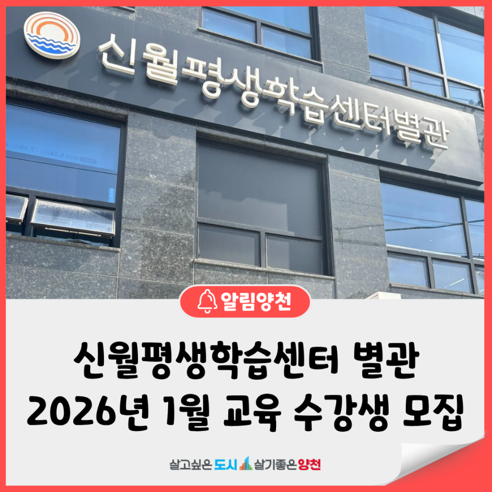 신월평생학습센터 별관에서 2026년 1월 교육 프로그램의 수강생을 모집합니다. 교육대상: 양천구민 모집기간: 2025. 12. 22.(월) 10시 ~ 정원 마감시 교육기간: 2026. 1. 5.(월) ~ 1. 28.(수) 프로그램 강좌명: 스마트폰으로 만나는 AI - ChatGPT 기간: 1. 5.~1. 26. 요일: 월 시간: 10:00~12:00 정원(명): 16 수강료: 15,000원 신년 재테크 꿀팁!