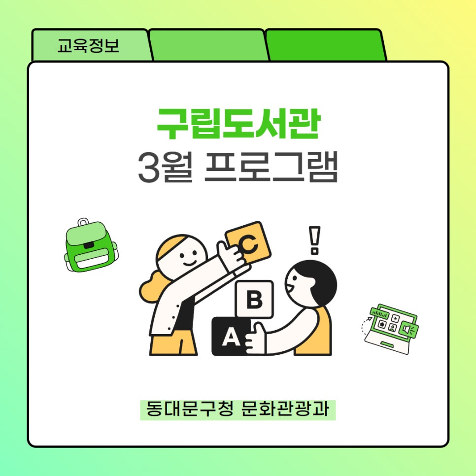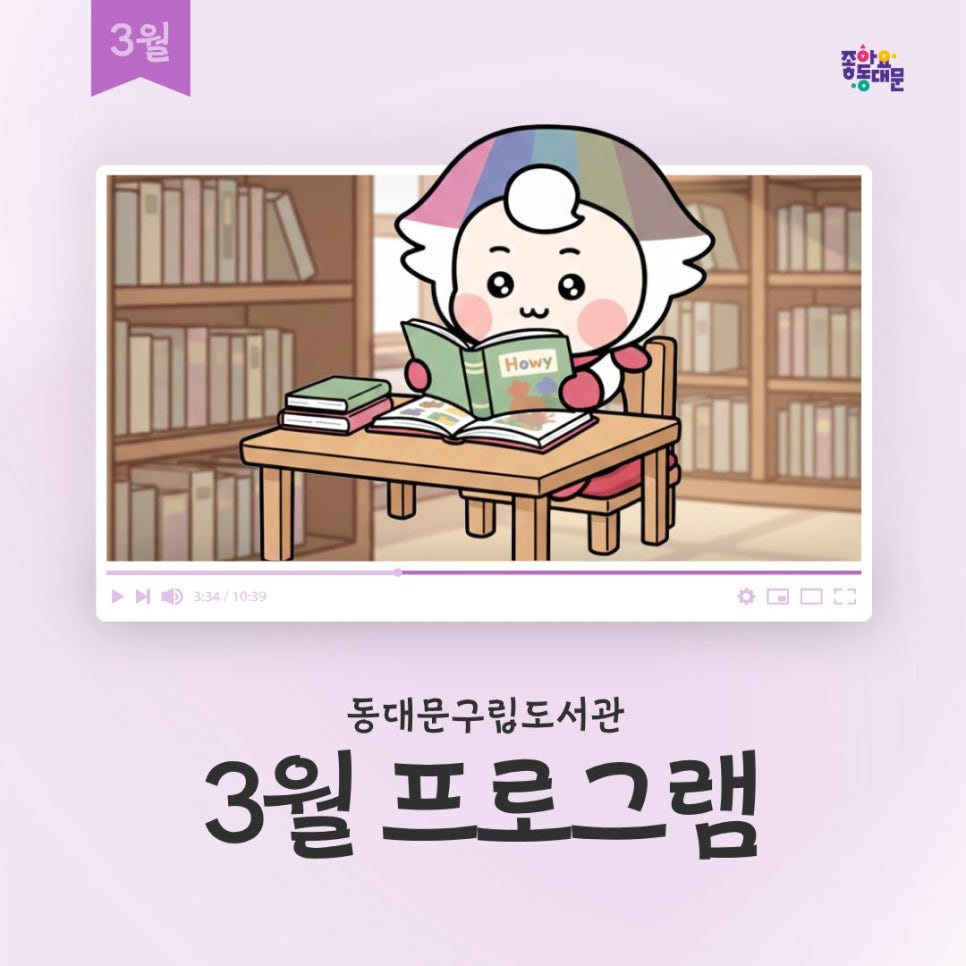 동대문구립도서관 3월 프로그램 기다리고 기다리던 독서마라톤부터 영어공부, 동화 연계 레고수업, 코딩 프로그램까지 🤖 없는 것 빼고 다 있는 동대문구립도서관으로 오세요!📚 2026년도 독서마라톤 대회 ✔ 운영내용: 책 1쪽을 마라톤 2m로 환산하여 코스에 따른 독서기록 진행(완주자 대상 다양한 혜택 제공) ✔ 접수기간: 2026. 3. 17.(화) 09:00 ~ 마감시...