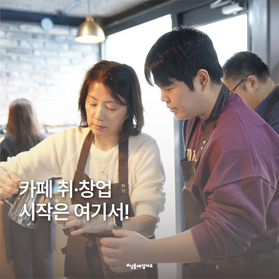 나도 이제 바리스타! 카페 취·창업의 첫걸음을 성동구와 함께하세요🤎 단순한 취미를 넘어, 자격증 취득부터 카페 취·창업까지 이어지는 과정으로 ‘막연한 꿈’을 ‘현실적인 시작’으로 바꿔보세요. 향긋한 시작, 지금 바로 도전해보세요 ☕✨ 교육과정 바리스타 2급 자격증 취득반 🗓️ 모집기간 2026. 4. 1.(수) 10:00 ~ 4. 2.(목) 17:00 ※ 30명 선착...