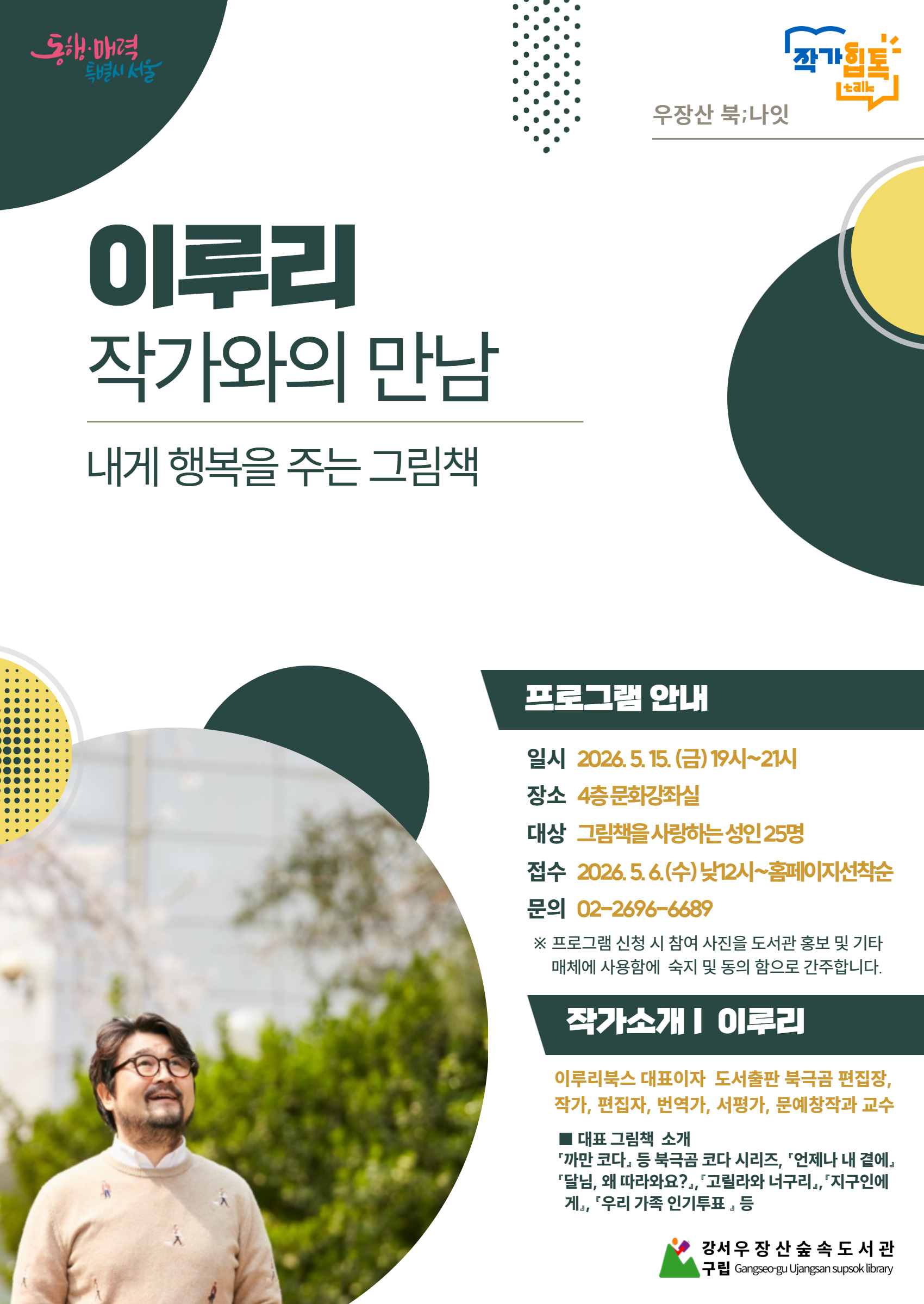 우장산숲속도서관에서 이루리 작가와 만나 행복한 그림책 이야기 나눠볼래?