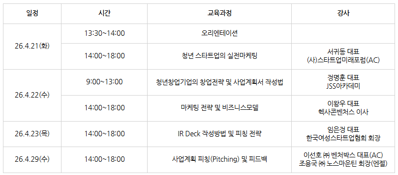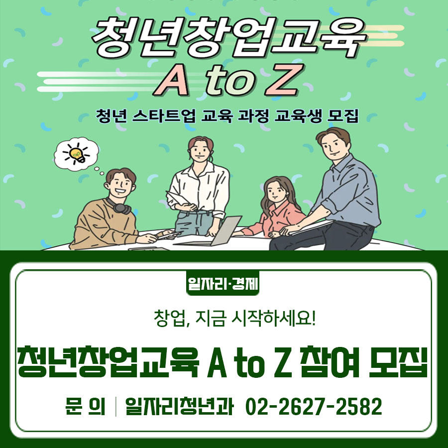 창업, A부터 Z까지 한 번에! 금천청년꿈터 청년창업교육참여자를 모집합니다.✨ 모집기간 2026. 4. 3.(금) ~ 4. 19.(일) 18:00까지 모집대상 금천구 내 거주하는 청년(예비창업자) 또는 금천구 내 사업장 주소를 둔 청년기업 모집인원 총 30명(선발자에 한하여 개별 연락) 교육내용 청년창업기업의 성장을 지원하기 위해 기업 경영에 필수적인 핵심 주제를 중심으로...