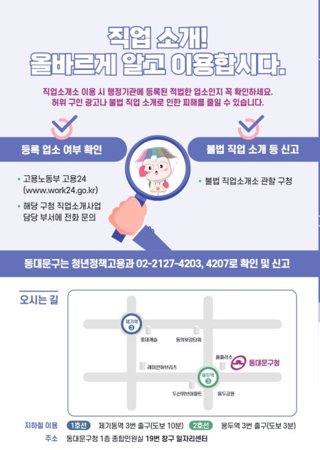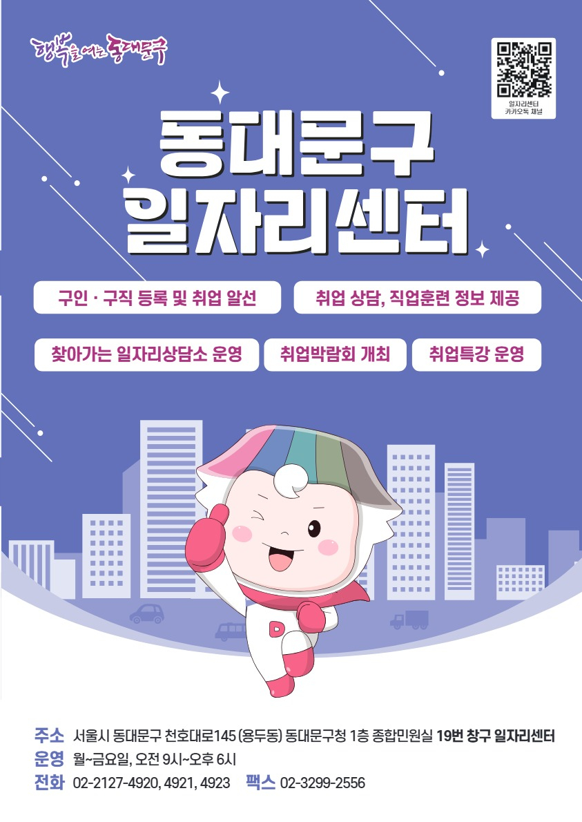 2026년 동대문구 일자리센터 운영 일자리 찾고 있다면, 혼자 고민하지 말고 여기로🤗 <동대문구 일자리센터>에서 상담부터 취업 연계까지 한 번에 챙겨보세요! 💼 이용대상 구직자 및 구인업체 💼 운영기간 월~금요일 09:00~18:00 💼 운영장소 동대문구 일자리센터(동대문구청 1층 종합민원실 19번 창구) 동대문구일자리센터 서울특별시 동대문구 천호대로 145 1층 💼...