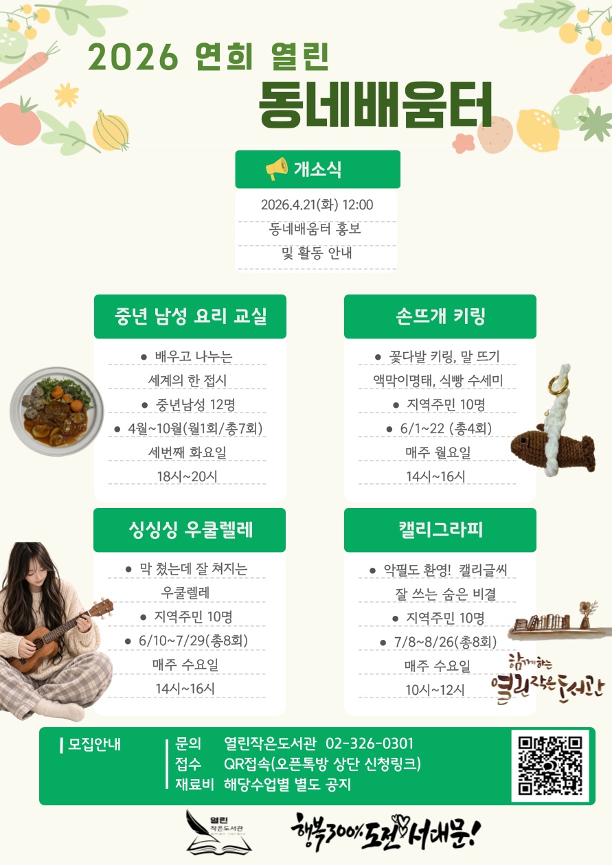 2026년 서대문구 동 평생학습센터(연희열린동네배움터) 수강생 모집 안내 *신청 방법 : QR코드를 통해 접수