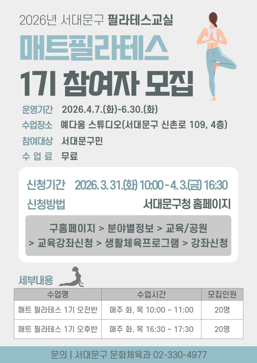 ※안내사항 - 참여자 선정은 온라인으로 추첨되며 4.6. 이후에 개별 문자 안내될 예정입니다. - 모집정원을 초과하는 신청자는 접수번호 순으로 대기자 등록합니다. - 운영기간 중 3회 이상 무단 불참 시 제적처리되며, 대기자에게 참여가 안내됩니다. - 운영기간 중 4회 이상 불참 시 수업 참여가 제한되며, 대기자에게 참여가 안내됩니다. 또한 다음 회기 신청 시 참여가 제한될 수 있습니다. - 원활한...