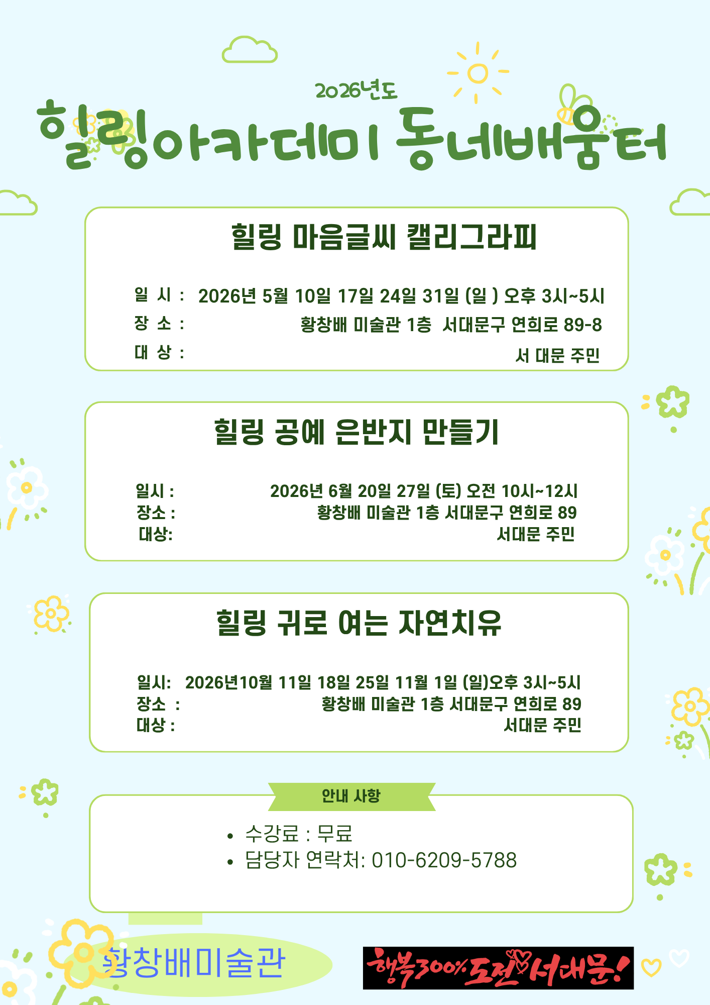 2026년 서대문구 동 평생학습센터(힐링아카데미동네배움터) 프로그램 안내 *신청방법: 구글폼 신청 (https://forms.gle/oYRNCPCTz1dMWAe16)