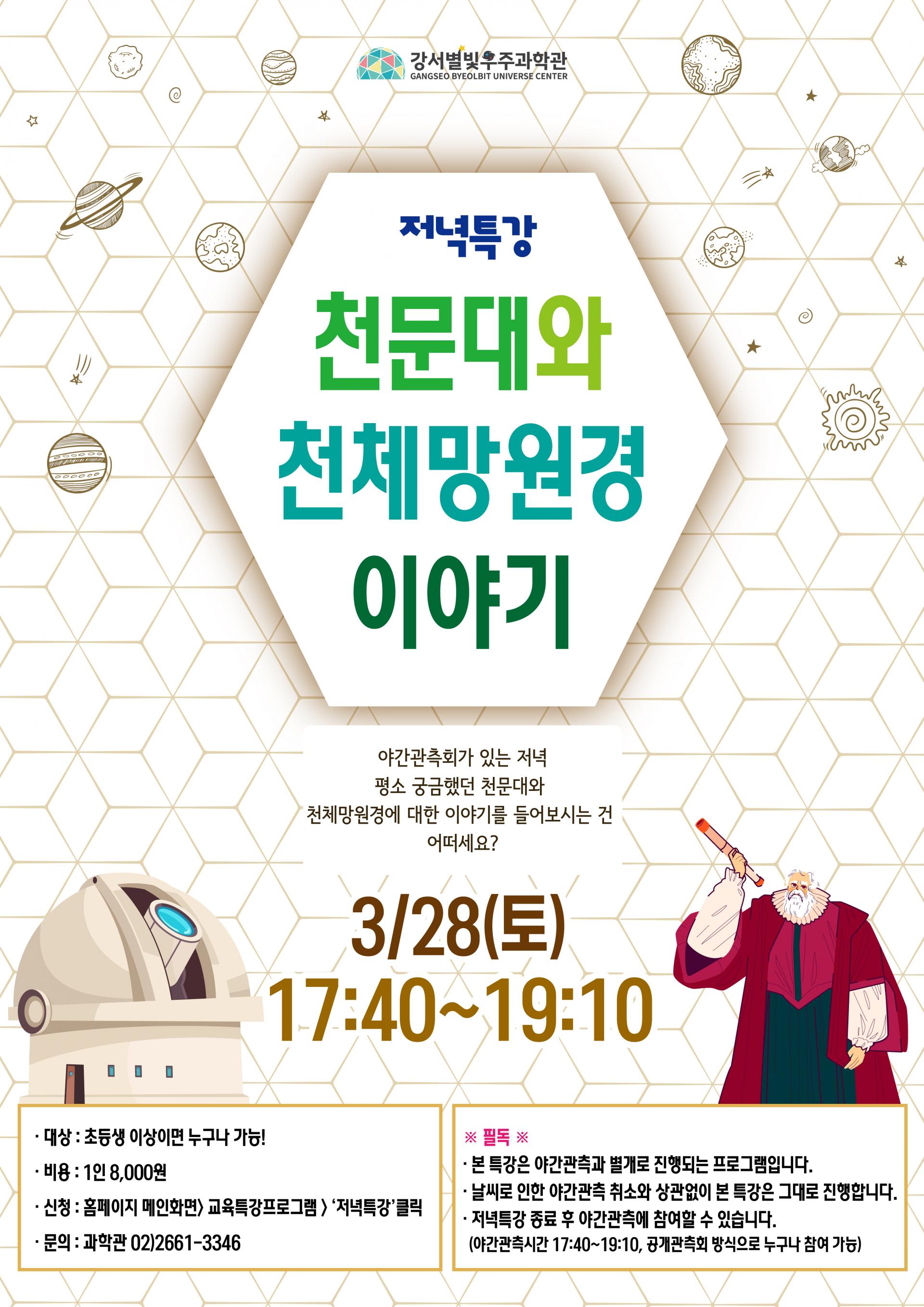 강서별빛우주과학관에서 천문대와 망원경 이야기를 배울 수 있는 특별 저녁강좌가 열려, 혼자 가도 좋은 우주 입문 기회야.