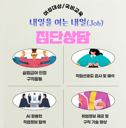 관악여성인력개발센터에서 여성 구직자들을 위한 집단상담 프로그램을 운영합니다. 실제 취업에 도움 되는 알찬 내용으로 구성된 이번 교육은 실업급여 구직활동으로도 인정되며 전액 국비 지원으로 부담 없이 참여하실 수 있어요. 취업 준비 중이신 여성분들의 많은 관심과 참여 기다립니다! ✅새일플러스 심화과정- 2기: 2026. 3. 10.(화) ~ 3. 12. (목) 09:30 ...