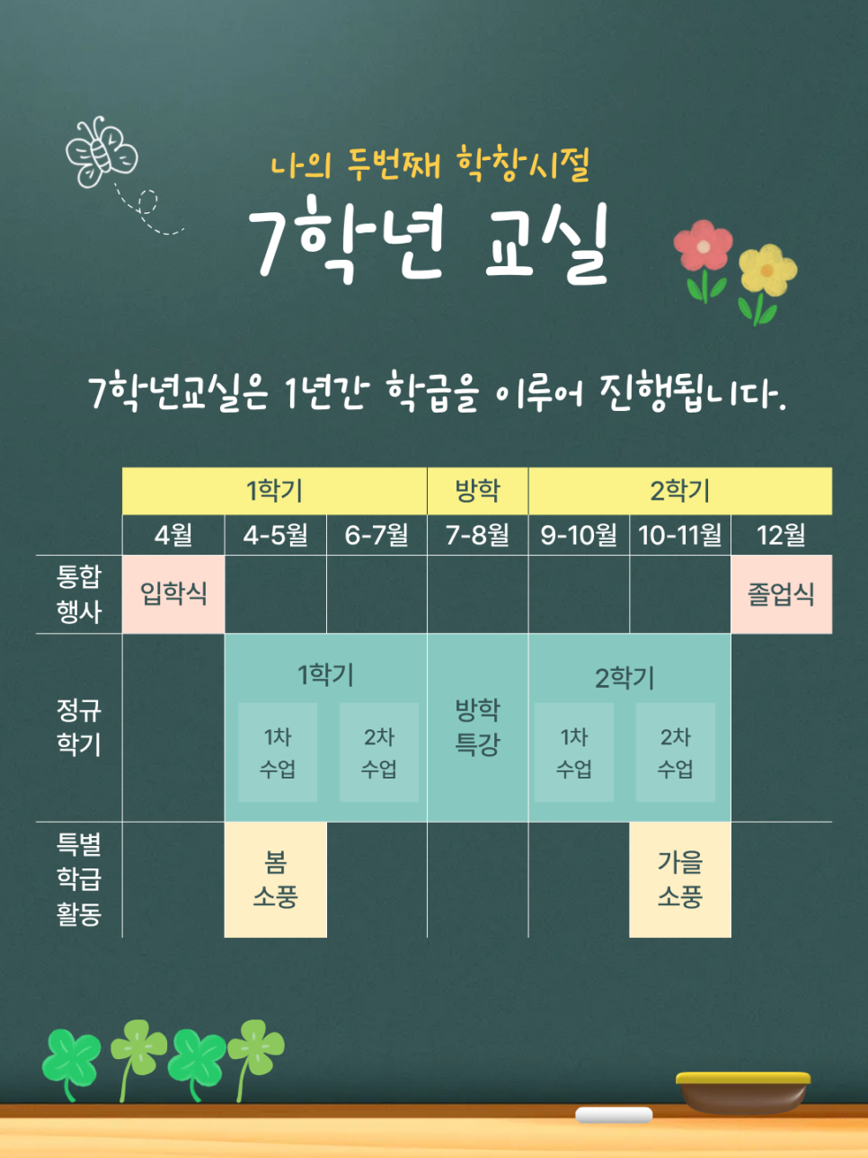 7학년 교실은 입학부터 졸업식까지 이어지는 학교형 학습 프로그램으로, 또래 학급 활동과 다양한...