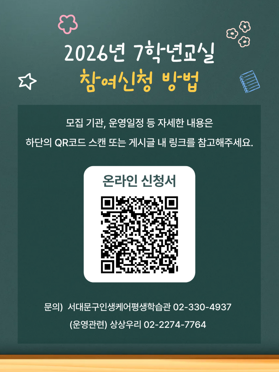 서울시민대학에서 새로운 배움과 친구를 만날 수 있는 특별한 프로그램 ‘7학년 교실’ 참여자를 모집합니다.