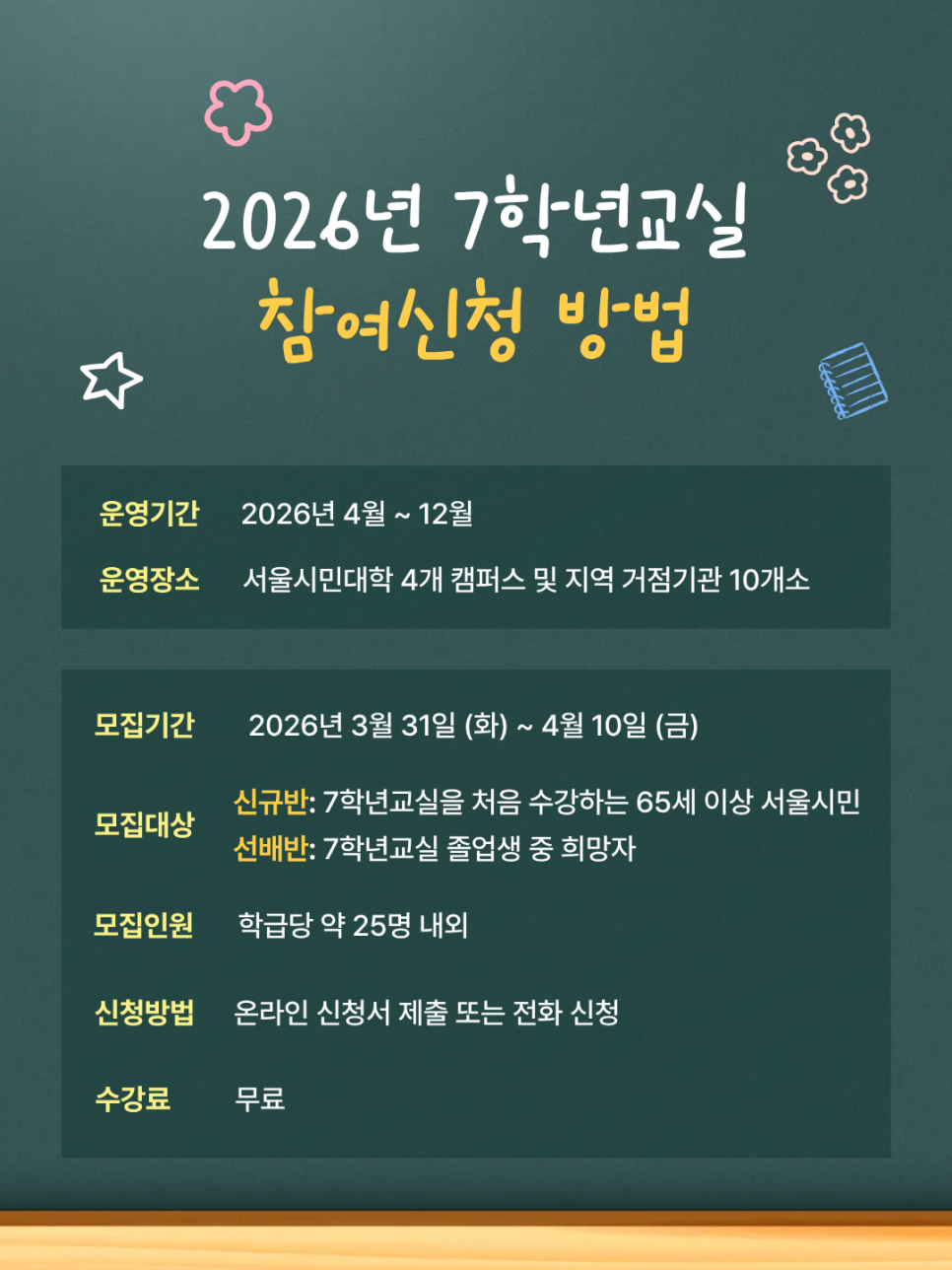 2026년 서울시민대학 7학년 교실 모집 안내
