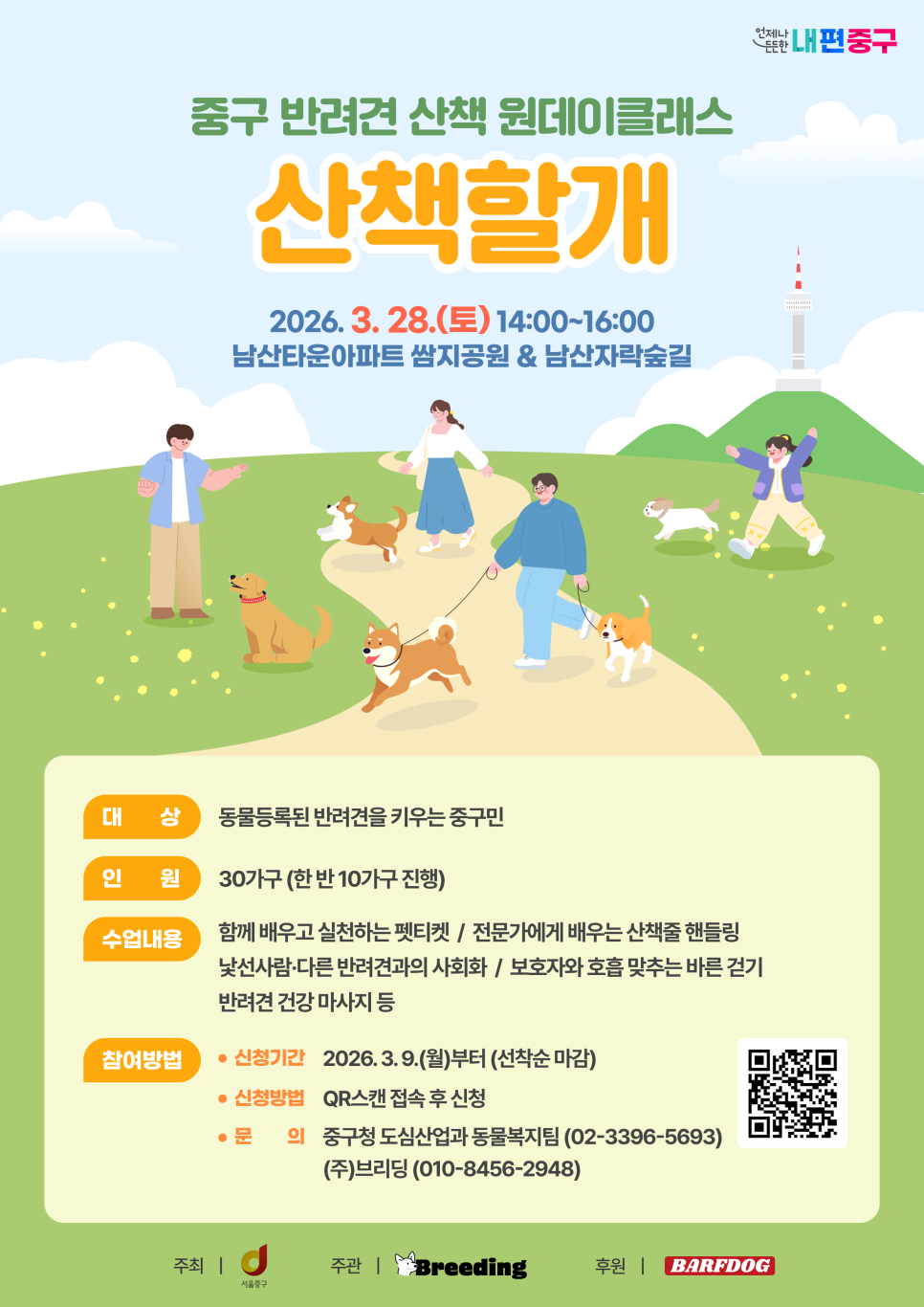 봄바람이 살랑이는 요즘, 반려견과의 산책이 더 즐거워지는 계절입니다. 🌿🐶 중구에서는 반려견과 보호자가 함께 배우며 더 편안한 산책 습관을 만들어갈 수 있는 반려견 산책 원데이 클래스 <산책할개>를 준비했습니다.😀 반려견과 매일 하는 산책, 이런 반려견 보호자에게 추천합니다. v 산책할 때 리드줄을 많이 당기는 반려견 v 다른 반려견을 만나면 흥분하거나 짖는 반려견 v ...