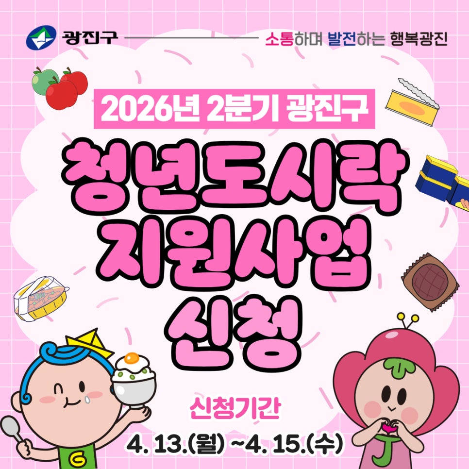 취업 준비로 바쁜 광진구 청년 여러분! 제대로 된 식사 한 끼 챙기기가 참 쉽지 않으시죠? 그래서 광진구가 그런 분들을 위해 든든한 도시락을 준비했습니다. 「광진구 청년도시락」은 4월부터 6월까지 총 3회에 걸쳐 광진구 취업 준비 중인 청년들에게 밀키트와 간편식품 세트를 지원합니다. 🙋🏻♀️ 대상 · 광진구에 주소를 둔 미취업 1인 가구 청년(19~39세) 100명 ※ 대학교(...)