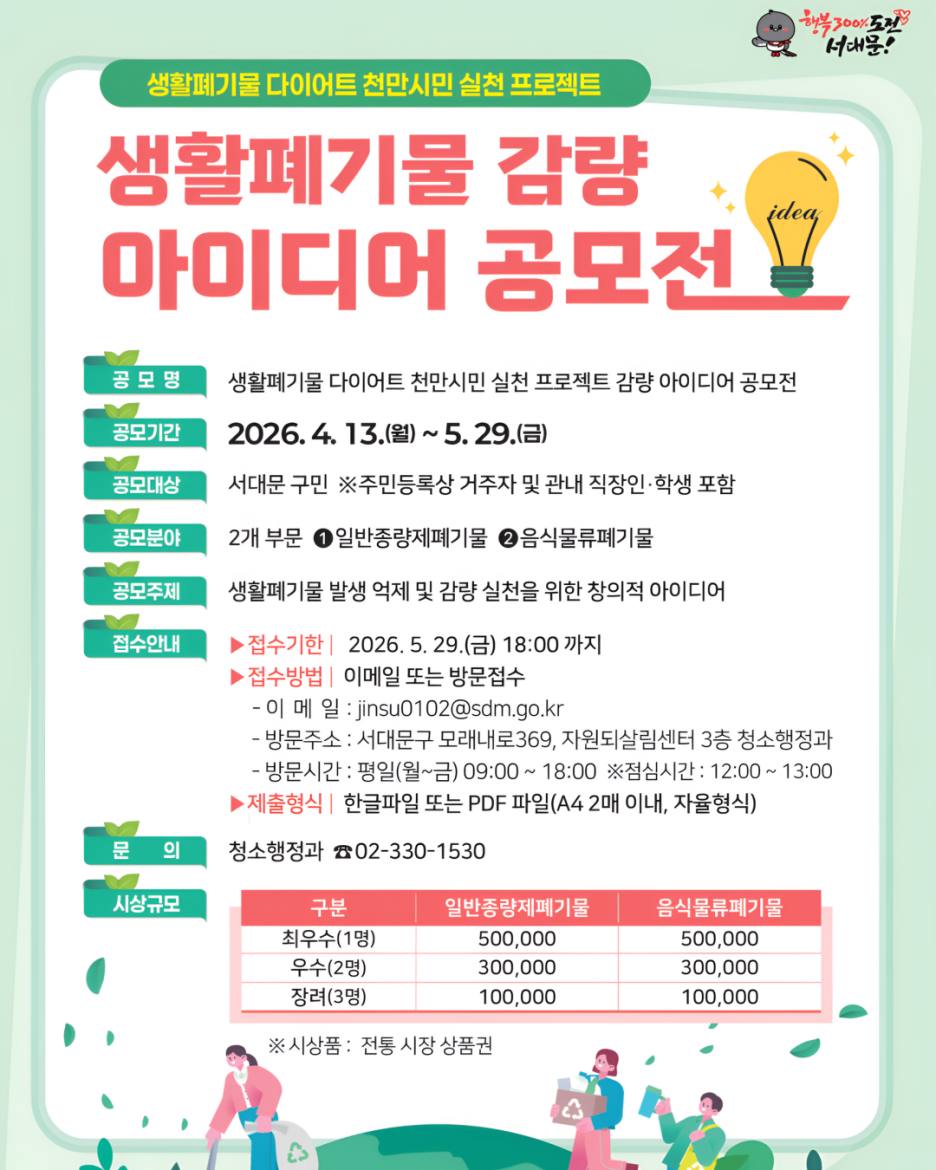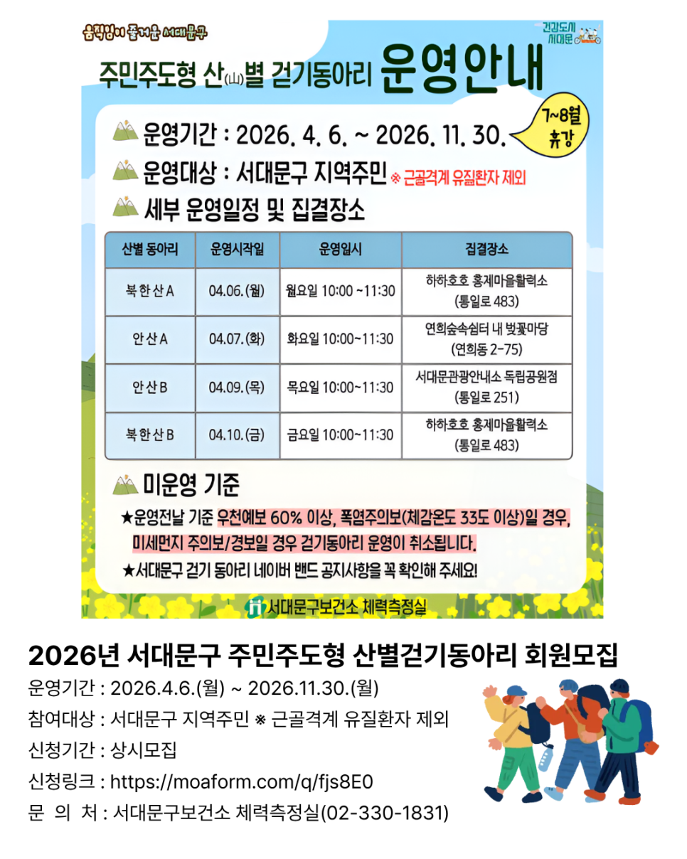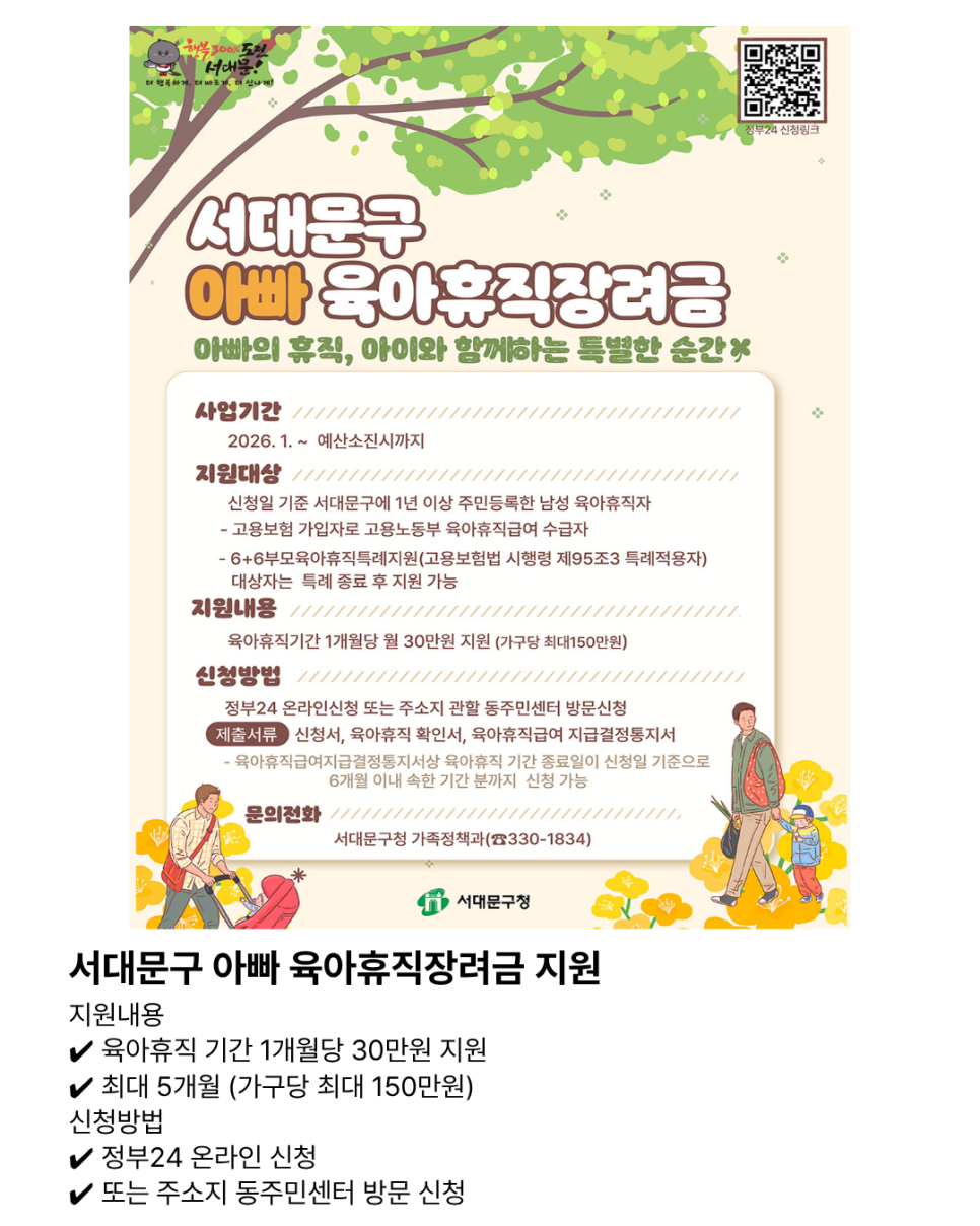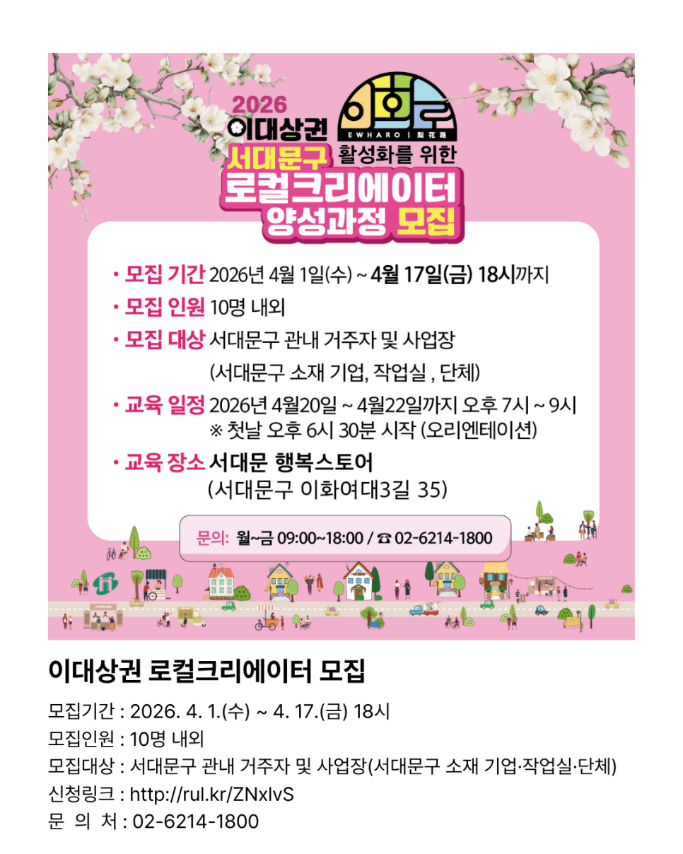 💟이주의 서대문 소식💟 4월 13일(월)~4월 19일(일) 서대문구에서 진행되는 이번 주 주요 소식과 참여 프로그램을 소개합니다. 주민 여러분께 도움이 되는 다양한 모집·교육·지원사업 정보를 확인해 보세요! 🌿 백련산 숲속치유센터 치유프로그램 📍 장소 백련산숲속치유센터(서대문구 백련산길 130, 1층) 📅 운영 일정 ✔ 4월 17일(금) 10:00 ~ 12:00 백련건강 ...