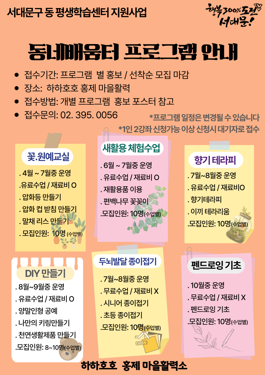 2026년 서대문구 동 평생학습센터(하하호호 동네배움터) 수강생 모집안내