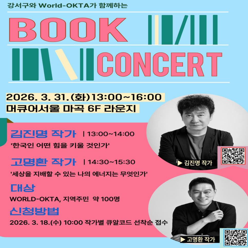 2026 한국 비즈니스 엑스포 강서에서는 다양한 프로그램이 준비되어 있는데요, 그 중에서도 책과 이야기가 함께하는 특별한 시간, 대한민국을 대표하는 김진명 작가, 고명환 작가와 함께 하는 북 콘서트가 열립니다 🙌🏼 책을 좋아하는 분들이라면 놓치기 아쉬운 프로그램이겠죠~?! 📅 행사 일정 2026. 3. 31.(화) 13:00 ~ 16:00 📍 머큐어 서울 마곡 6층 라운지 🎤...