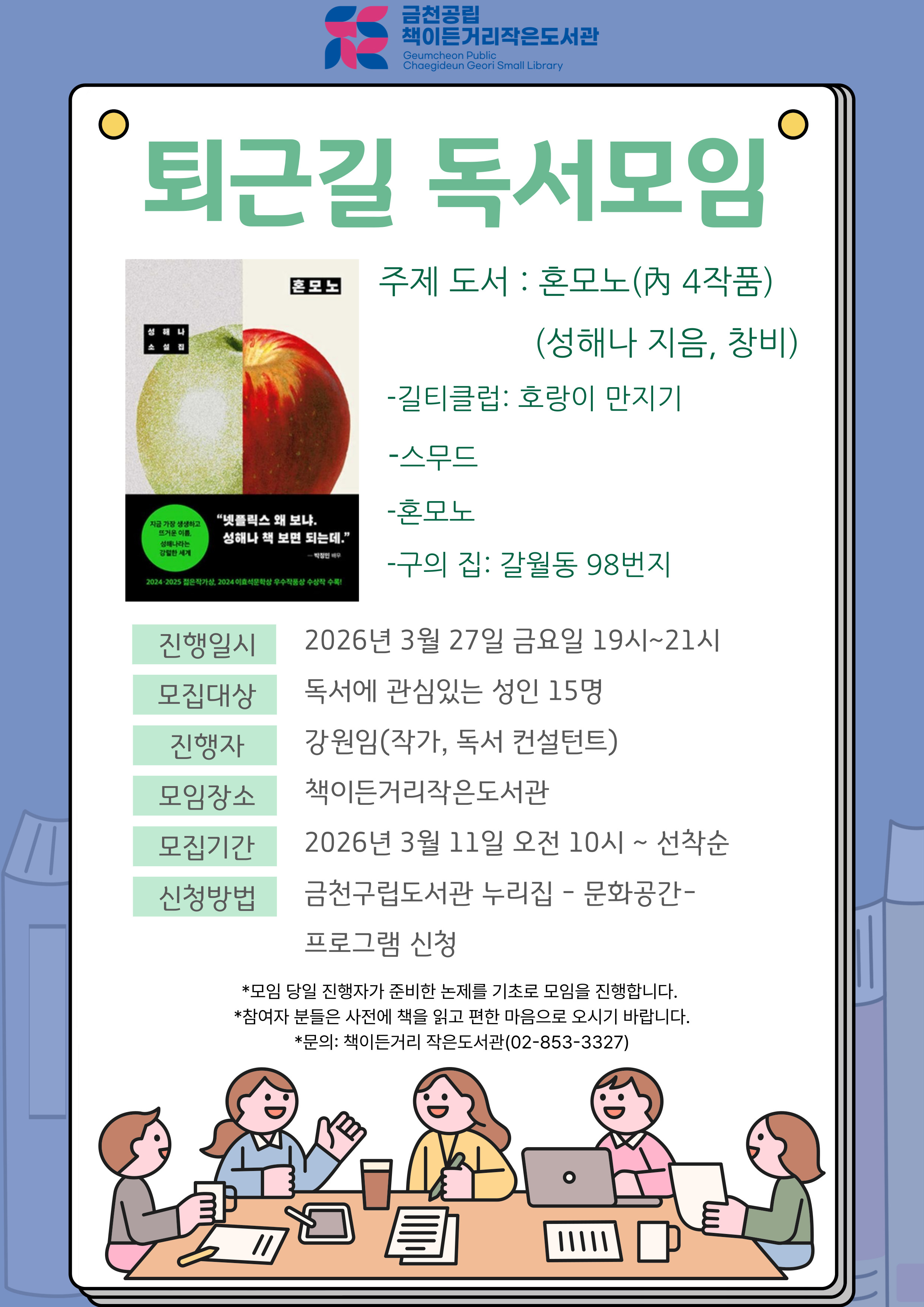 퇴근길에 책 읽고 마음 나누는 소모임, 함께할 사람 찾아요!