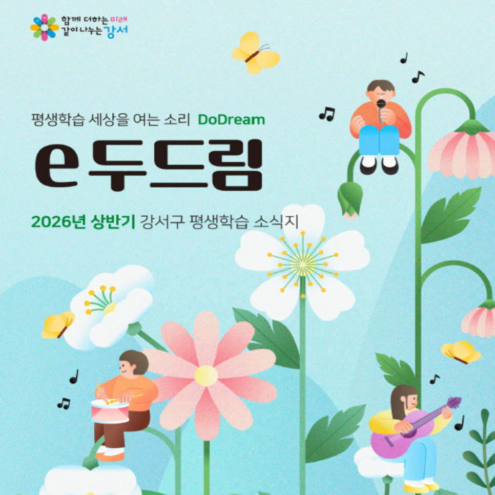 2026년 상반기 강서구 평생학습 소식지『e-두드림』이 새롭게 찾아왔어요! 강서구 전역에서 운영되는 다양한 평생학습 프로그램 정보를 한데 모아 한눈에 볼 수 있도록 담았습니다 👀✨ 어느 동에서, 어떤 공간에서, 언제 배움이 시작되는지 궁금하셨다면? ✔ 강서구 주요 공공시설 ✔ 동 주민센터 ✔ 복지관과 도서관까지 강서구 곳곳에서 열리는 상반기 평생학습 일정과 강좌 내...