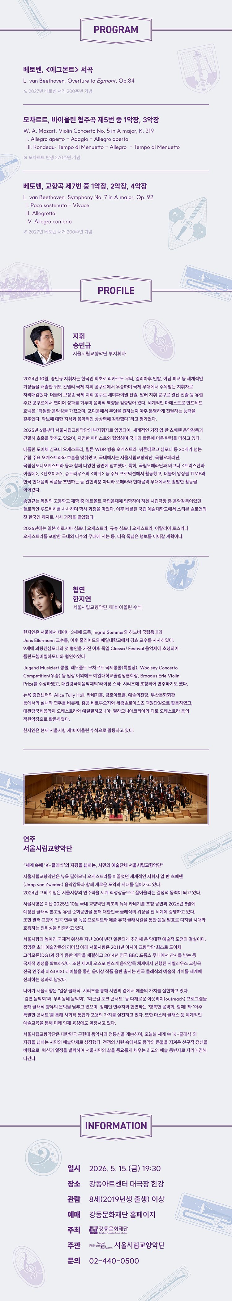 일자 2026.05.15 공연시간 2026. 5. 15.(금) 19:30 장소 대극장 한강 관람등급 8세 이상 (2019년생 이상) 티켓가격 전석 무료 소요시간 약 70분 (인터미션 없음) 매표소 오픈 공연 시간 2시간 전 (17:30) 문의 강동아트센터 02-440-0500